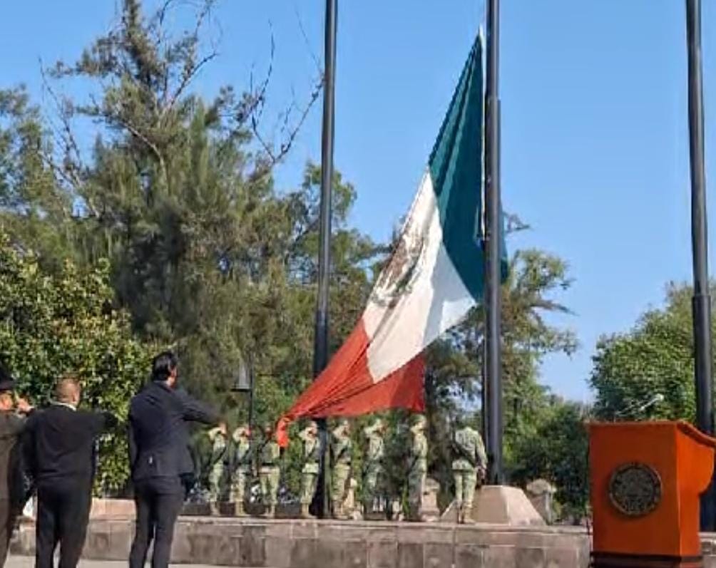 Esta mañana, 4 de noviembre, primer lunes del mes, tuvo lugar el acto cívico de honores a la bandera en la Plaza Jardín Morelos en que las Fuerzas Armadas rindieron honores a la Insignia Nacional, con la presencia de autoridades municipales, estatales, militares y estudiantes en que fue izada la Bandera de México, símbolo de la Independencia y la unidad nacional, con sus tres franjas verde, blanca y roja, que representan la esperanza, la pureza y la sangre de los héroes patrios.
