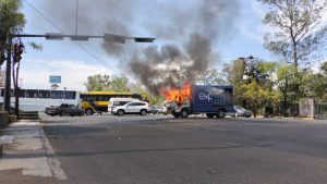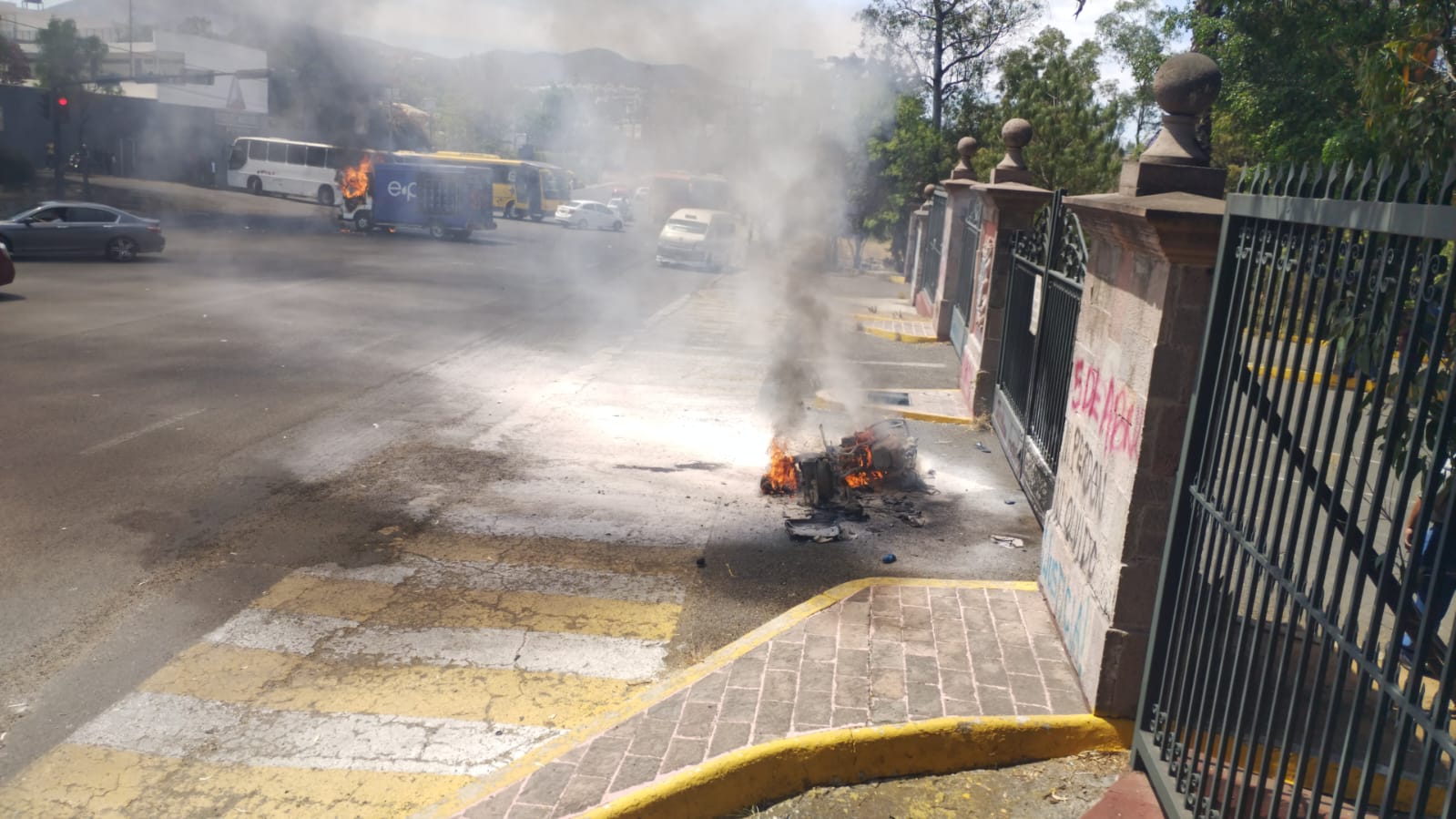A las afueras había una motopatrulla, misma que fue dañada por los manifestantes al punto de que la incendiaron. Un camión de EPura y con un vehículo de FedEx, también acabaron incendiados por los inconformes en la zona del Libramiento Independencia.