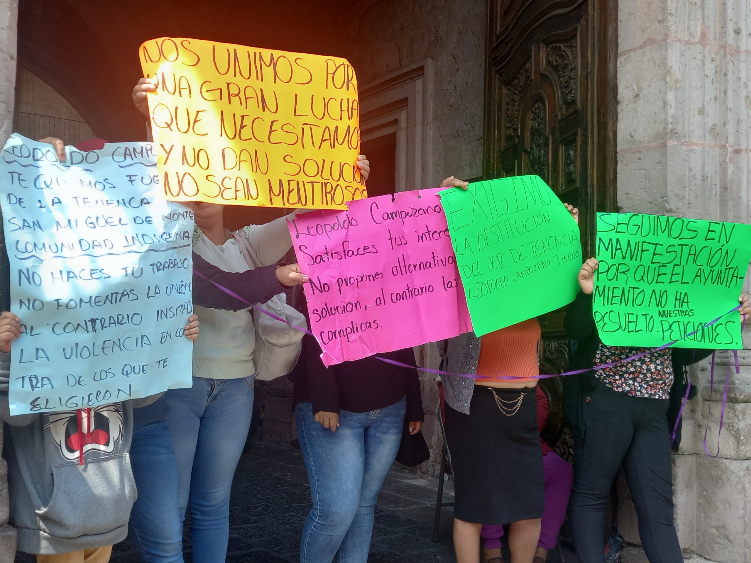 A las afueras de Palacio Municipal el cual bloquearon, acusaron que con el jefe de Tenencia Leopoldo Campuzano se mantiene las reuniones con el ayuntamiento, situación que no les informa y prefiere que se mantenga la problemática de la extracción del agua que lleva a cabo una empresa.