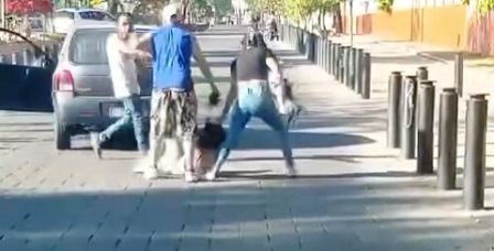 Asimismo, la acompañante del conductor del Chevy, se bajó del vehículo y se puso a grabar la situación, haciéndose de palabras con una pasajera que con bebé en brazos también se bajó de la combi a ver la situación y quien con jalón de cabello incluido también agredió a la joven del vehículo particular.