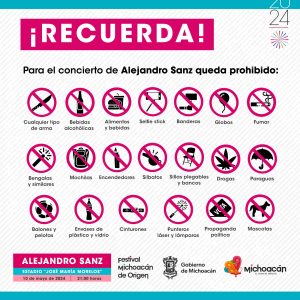 Faltan solo unas horas para el concierto de Alejandro Sanz en Morelia, como parte de la celebración por el Día de las Madres del Festival Michoacán de Origen; para que disfrutes en un ambiente seguro y 100 por ciento familiar, te dejamos las siguientes recomendaciones.