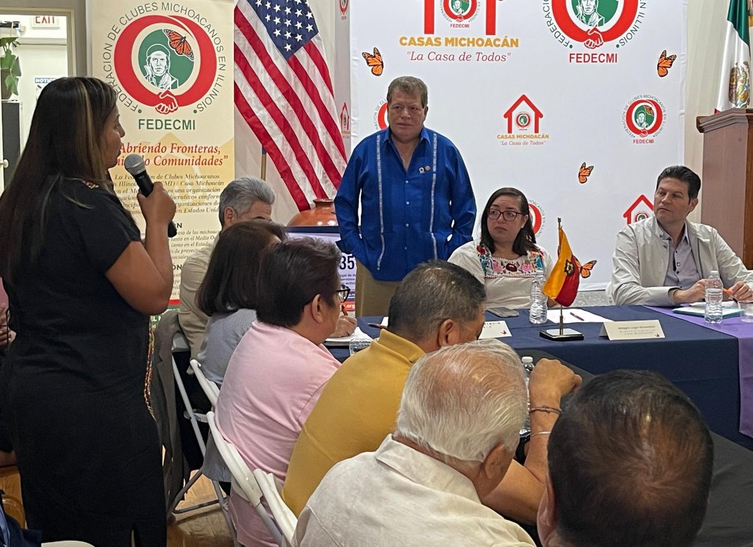 Participaron también Rubén Chávez, Presidente de la Federación de Clubes Michoacanos de Illinois; Maggi Lugo, directora de Casa Michoacán, Artemio Arreola, presidente de Casa Michoacán y Daniel Aguilar, titular de la Dirección de Atención al Migrante del Gobierno de Morelia.