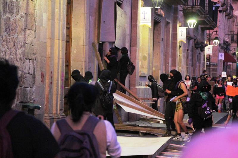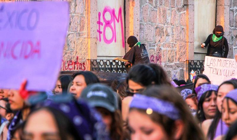 Mientras gritaban consignas en contra de la violencia de género, las mujeres marchantes realizaron diversos destrozos, manifestando su repudio hacia la violencia física, económica y emocional que afecta a las mujeres.