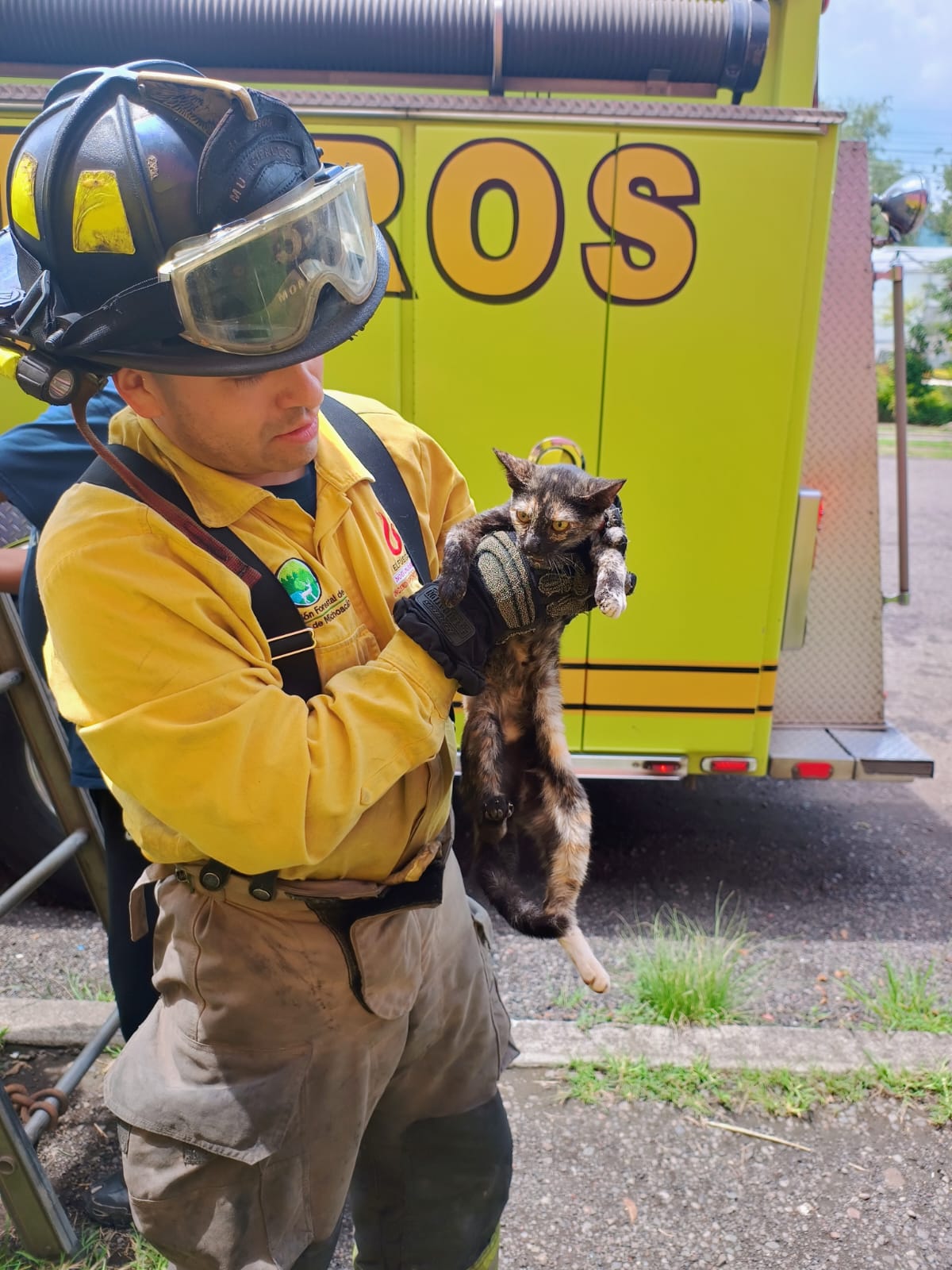 Morelia, Michoacán.- Un gatito que se encontraba atrapado en un espectacular, fue rescatado por efectivos de la Coordinación Municipal de Protección Civil y Bomberos de Morelia.
