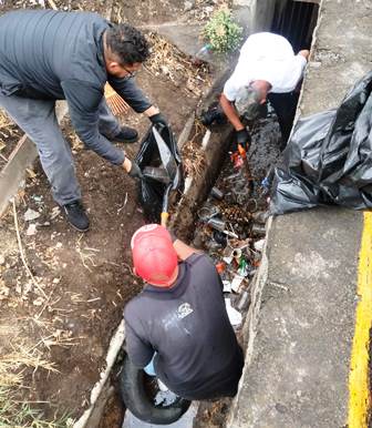 Asimismo, las brigadas intervinieron los drenes Carlos Salazar y el dren pluvial que se encuentra frente a la estación de Bomberos Municipales, retirando grandes cantidades de desechos en cada uno de estos puntos.