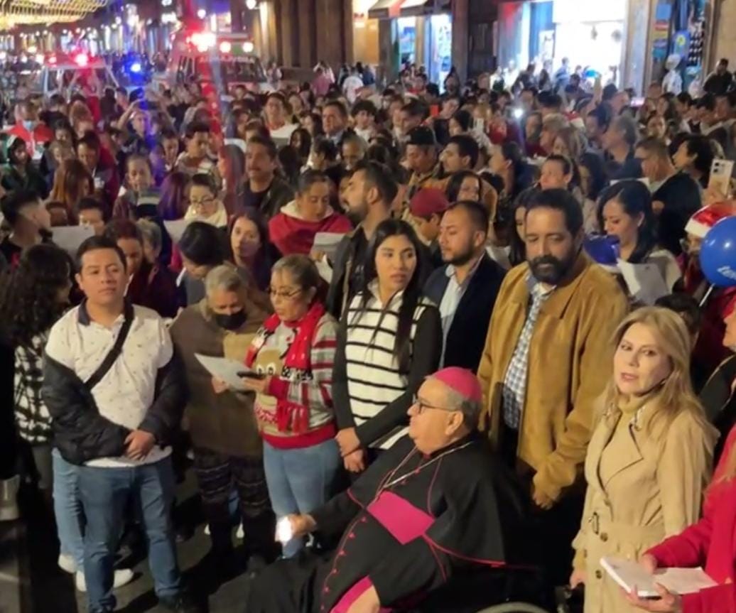 Son familias en su mayoría, y también hermanas religiosas quienes avanzan por la Avenida central de esta capital. El rezo de la posada culminará en cuanto lleguen a Catedral donde habrá un concierto con coros navideños.