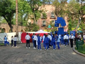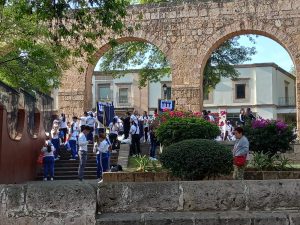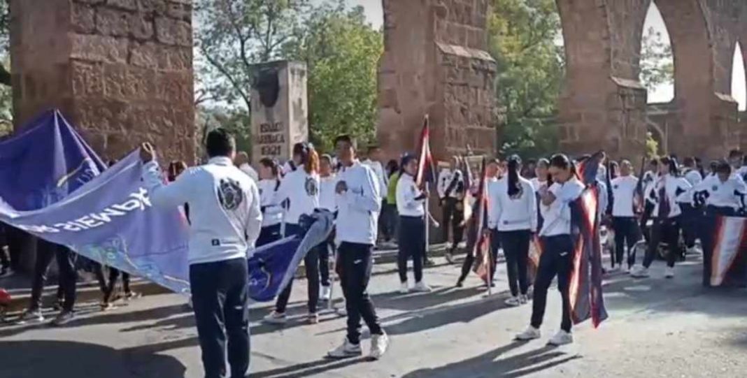 Los contingentes son escolares casi en su totalidad para esta parada que tradicionalmente es de corte deportivo.