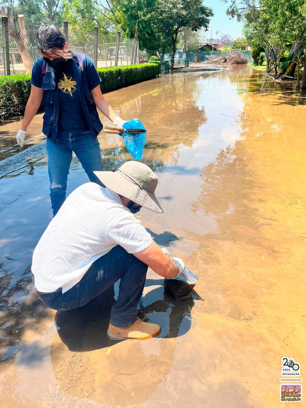 Ingenieros ambientales del Parque Zoológico Benito Juárez realizaron un muestreo del agua y lodo que dejó la inundación provocada por el desfogue realizado por el Organismo Operador de Agua Potable, Alcantarillado y Saneamiento de Morelia (OOAPAS) el pasado domingo en la madrugada.