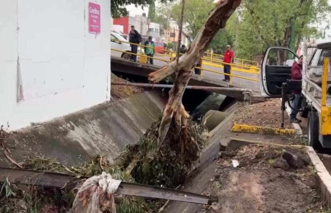 En la colonia Ocolusen, se trabaja una vez más en la limpieza del canal Fray Antonio de San Miguel, donde se han retirado ramas y basura que arrastra la lluvia.