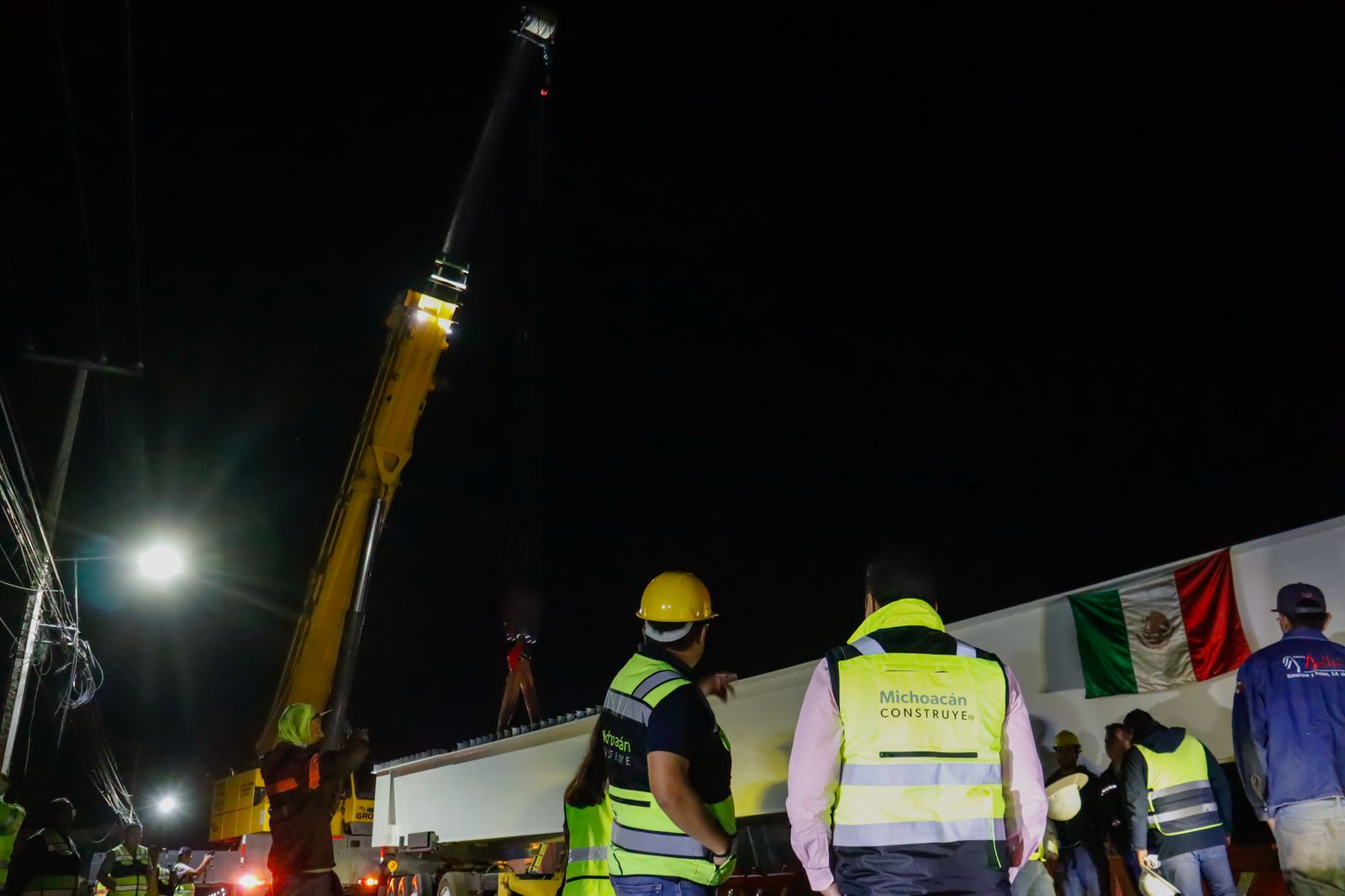 Durante la noche del jueves, el gobernador Alfredo Ramírez Bedolla supervisó la instalación de la última trabe metálica del paso superior vehicular Catrinas, en Villas del Pedregal. Con un avance significativo, la obra se encamina a su conclusión, faltando solo 47 días para su entrega.