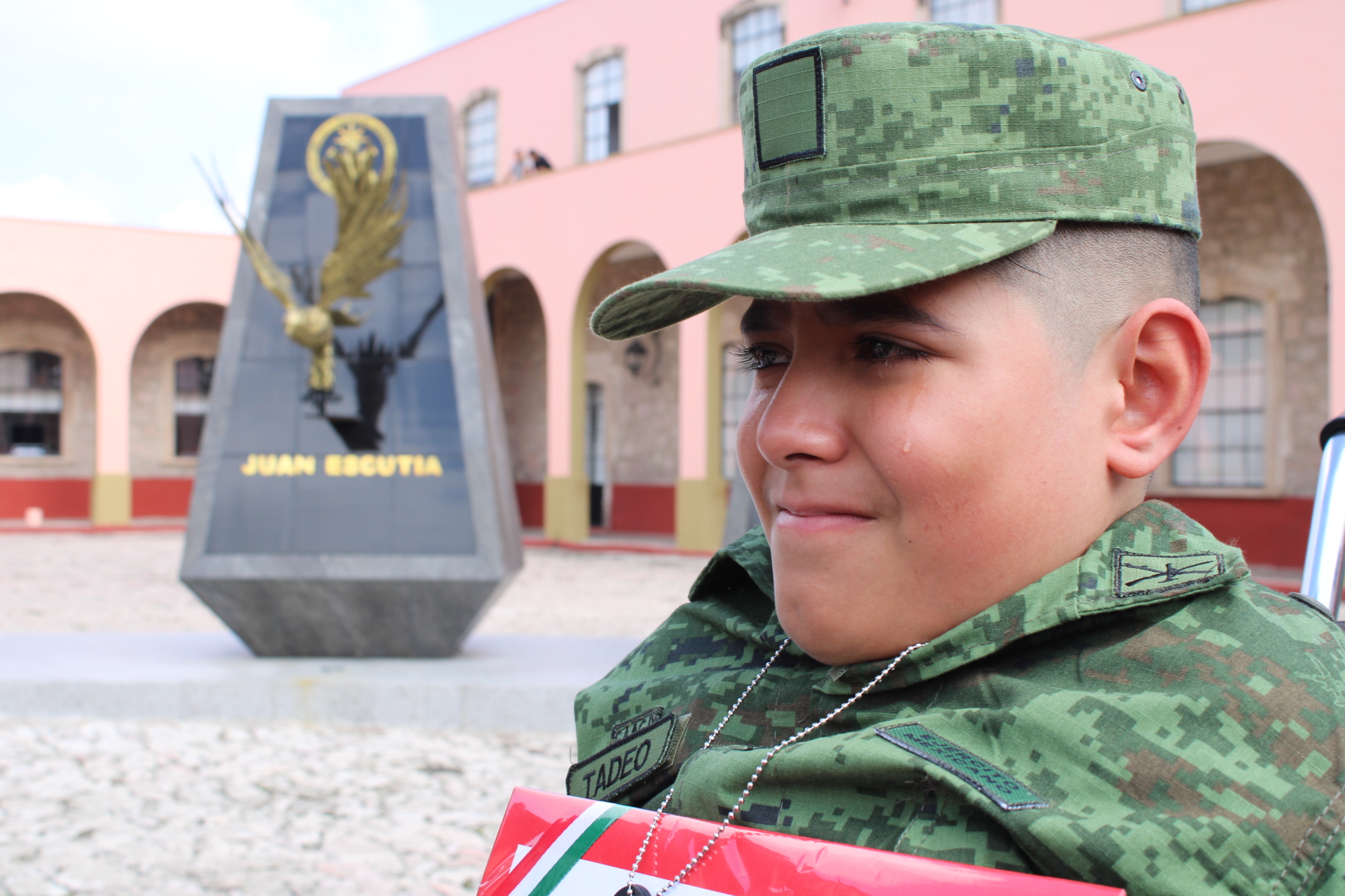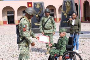 En una ceremonia donde personal militar estuvo presente y le rindió honores, el niño Tadeo fue reconocido como Soldado Honorario del 12/o Batallón de Infantería, además de entregársele sus placas de identificación y un reconocimiento, para que viviera la experiencia al máximo de ser soldado del glorioso Ejército Mexicano por un día.