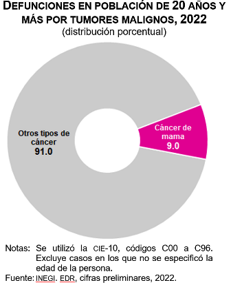 Del total de muertes por tumores malignos 9.0 % fue por cáncer de mama