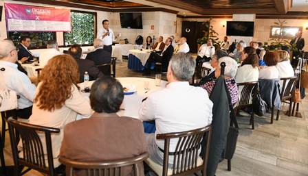 Ante 40 ex legisladoras y legisladores del Partido Acción Nacional (PAN), el candidato a responsable del bloque opositor, presentó un esbozo del ideal de nación que anhela, haciendo especial énfasis en el tema de la inseguridad que azota a todo el país: “el que más nos duele es el problema de la violencia e inseguridad, no tengo duda de que este aspirante a dictador llegó a acuerdos para ganar el poder, un ejemplo que ilustra esto, fue el resultado electoral en Baja California Sur, estábamos arriba de 15 puntos la coalición y entres días resulta que gana Morena con más de 20 puntos, lo que pasó en Michoacán, en el Estado de México, eso tiene un trasfondo muy peligroso, el hecho de que el 80% del territorio nacional esté controlado por el crimen organizado nos pone ante la ausencia absoluta del estado de derecho”.