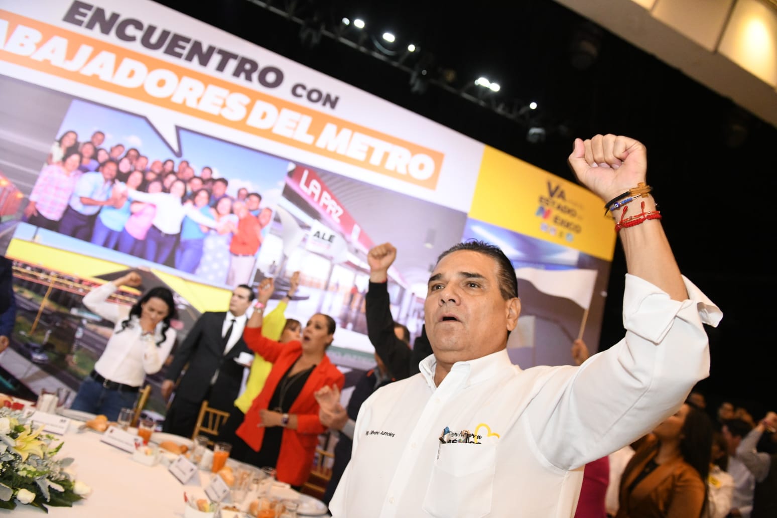Ecatepec, Estado de México.- Ante más de mil integrantes del Sindicato Nacional de Trabajadores del Sistema de Transporte Colectivo (STC) Metro, el aspirante presidencial, Silvano Aureoles Conejo, dio su respaldo a las propuestas de la candidata a gobernadora, Alejandra del Moral; además reconoció la importante labor que estas mujeres y hombres realizan, “sin su empeño diario, millones de ciudadanos no podrían atender sus actividades, es urgente que se restablezca el mantenimiento de las líneas y las instalaciones, que se les pague a tiempo y las condiciones de seguridad bajo las que laboran sean atendidas” indicó.