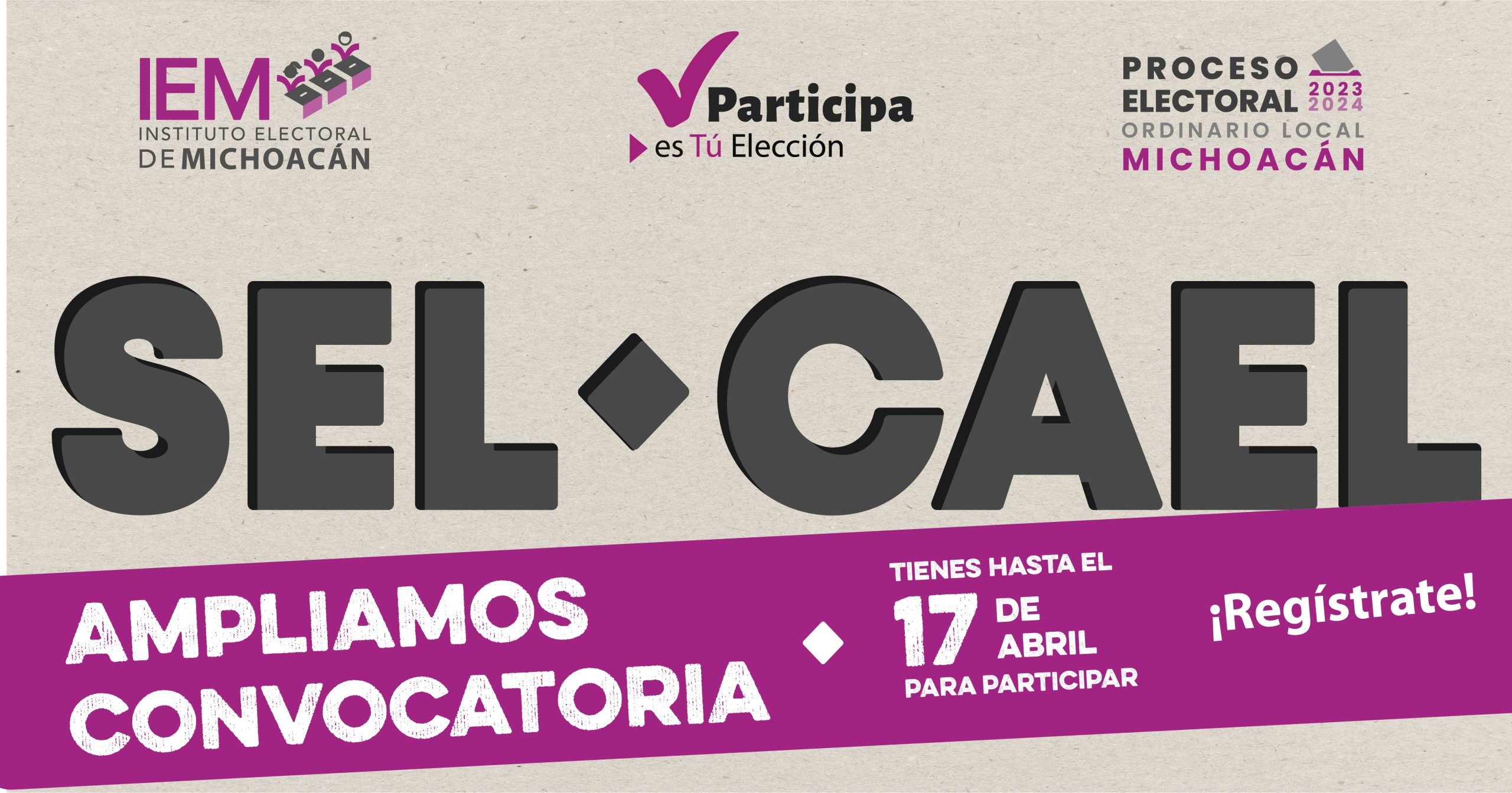 Del 08 AL 17 de abril de 2024 el Instituto Electoral de Michoacán (IEM) amplió los plazos de registro de la convocatoria para el reclutamiento y contratación de 1913 supervisores electorales locales (SEL) y capacitadores-asistentes electorales locales (CAEL) en los 112 Municipios donde se desarrollarán elecciones a Diputaciones y Ayuntamientos en el Proceso Electoral Ordinario Local 2023-2024.