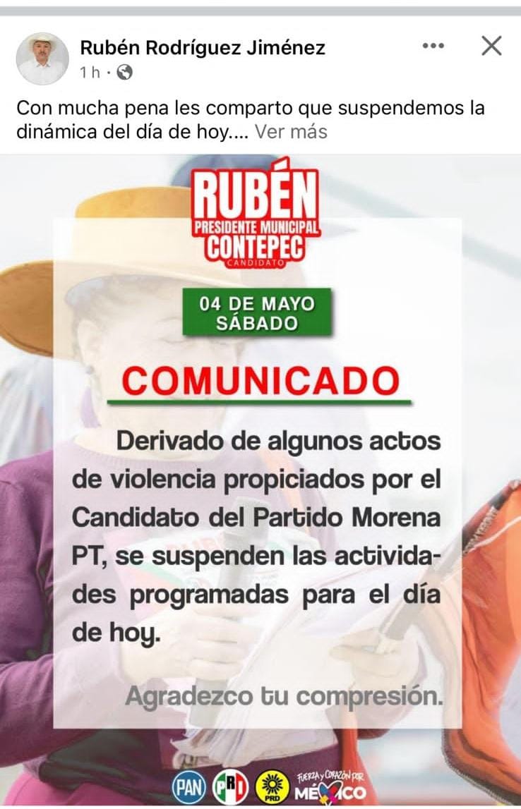 Morelia, Mich.- El Comité Directivo Estatal del PRI condena los actos violentos por parte de integrantes del partido Morena, contra el equipo de campaña de nuestro compañero Rubén Rodríguez Jiménez, candidato a presidente municipal de Contepec.