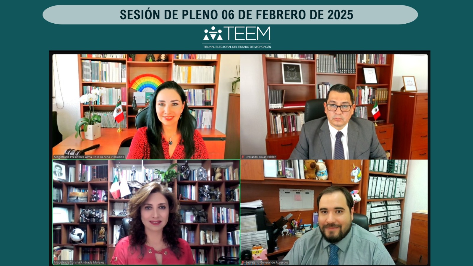 Alma Rosa Bahena Villalobos, Magistrada Presidenta del Tribunal Electoral del Estado (TEEMICH), la Magistrada Yurisha Andrade Morales y el Magistrado Everardo Tovar Valdez resolvieron en Sesión Pública del día de hoy ocho proyectos: dos procedimientos especiales sancionadores (PES), un recurso de apelación (RAP), tres juicios de la ciudadanía (JDC), un incidente y un acuerdo de incumplimiento.