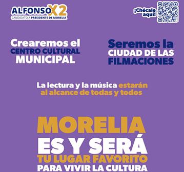 Para el siguiente Gobierno, el candidato del PAN y el PRD, Alfonso Martínez anunció que la cultura se mantendrá como un pilar de desarrollo en Morelia, colocando a la ciudad como una sede para producciones cinematográficas nacionales e internacionales, a través de la Comisión Fílmica Municipal.