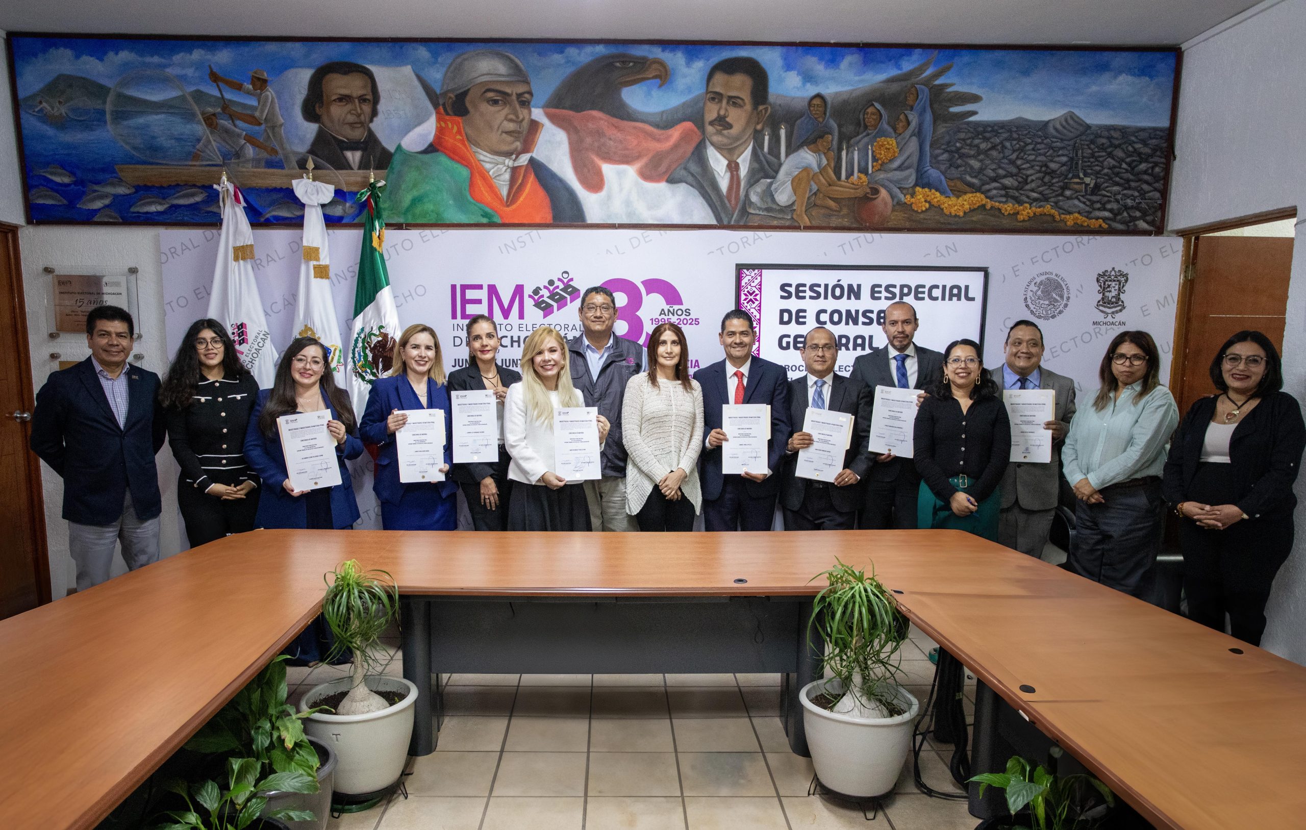 En Sesión Especial de Consejo General del Instituto Electoral de Michoacán (IEM), llevó a cabo la entrega de constancias de mayoría a las personas que resultaron electas para ocupar cargos como Magistraturas de Disciplina Judicial y Penales, así como Juezas y Jueces en materia Laboral en el marco del Proceso Electoral Extraordinario del Poder Judicial del Estado de Michoacán 2024–2025.