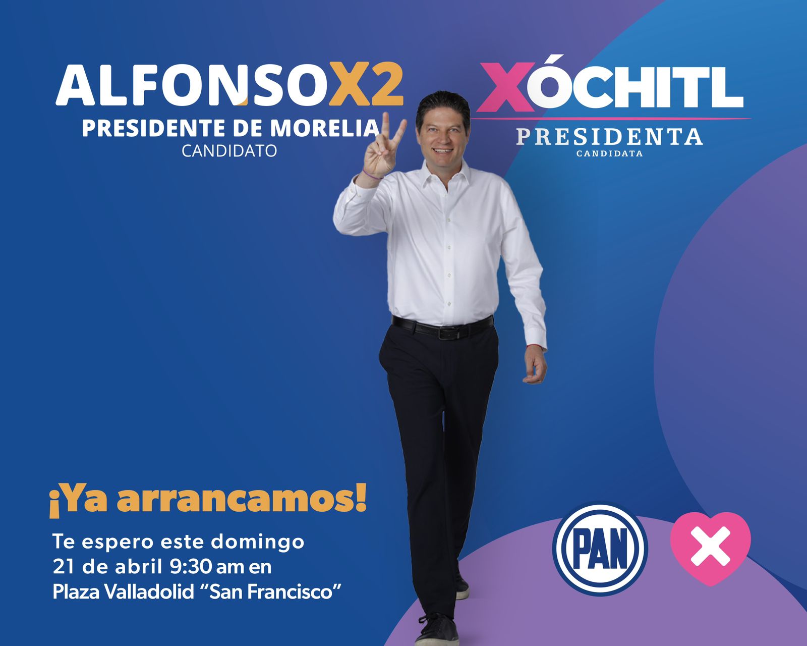En punto de 09:30 horas, el candidato del PAN y el PRD estará acompañado por miles de morelianos y morelianas que lo han respaldado en estos 6 días de jornada a lo largo y ancho de la capital.