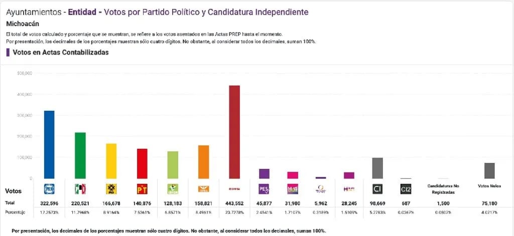En Michoacán se mantiene porque alcanzó un 8.91% del porcentaje de votación. Esto es, 166 mil 678 votos a favor