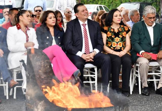 Memo Valencia, en compañía de la secretaría general del partido, Xóchitl Ruiz González, mencionó que la bandera nacional incinerada vio pasar generaciones enteras de priistas y no podía ser de otra forma su cambio, en el marco de lo que dicta la Ley sobre el Escudo, la Bandera y el Himno Nacional.