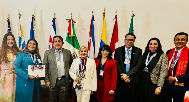 Toluca, EdoMex.- Alma Rosa Bahena Villalobos, Magistrada Presidenta del Tribunal Electoral del Estado (TEEMICH) recibió la Medalla Illuminato a la Trayectoria Única de la Federación Iberoamericana de Abogados-Europa, en el marco de la XXXIX Cumbre Global FIA, África, Europa, Asia, América y Toluca, Estado de México en honor al 45 Aniversario de la Corte Interamericana de Derechos Humanos (Corte IDH) realizado en el auditorio de la Facultad de Derecho de la Universidad Autónoma del Estado de México.