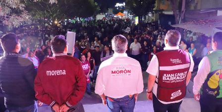 Junto al candidato al senado, Raúl Morón y al candidato a diputado federal por el Distrito 8, Ernesto Núñez, Barragán agradeció el apoyo de la gente y se comprometió a seguir trabajando todos los días por la transformación del fraccionamiento más grande de Michoacán.
