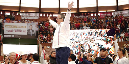 Durante su intervención, el canciller se comprometió a respaldar a la tierra purépecha en caso de llegar a concretarse sus aspiraciones políticas y ocupar la silla presidencial.