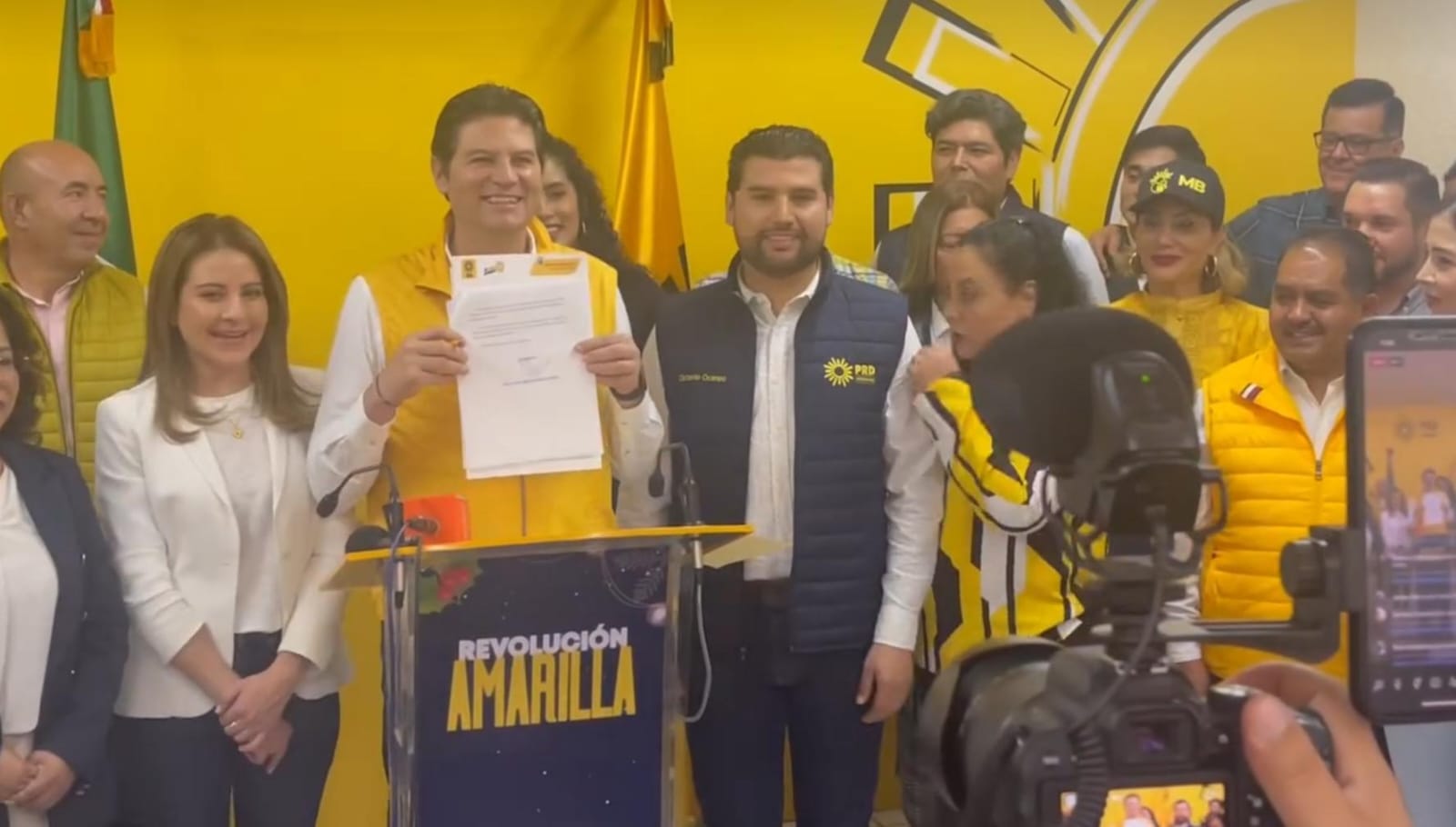 Arropado por la militancia del Sol Azteca y acompañado de su esposa Paola Delgadillo, ataviado en chaleco amarillo distintivo del perredismo, el independiente se comprometió a luchar por la democracia que es una bandera central de ese instituto político.