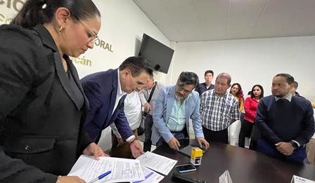 Zitácuaro, Mich.- Silvano Aureoles Conejo, se registró la tarde de este jueves ante las autoridades del Instituto Nacional Electoral (INE), como candidato por el Distrito Federal 03 con cabecera en Zitácuaro abanderado por la coalición Fuerza y Corazón por México conformada por los partidos Acción Nacional, Revolucionario Institucional y de la Revolución Democrática. El ex gobernador estuvo acompañado de su suplente, J. Dolores García, destacados liderazgos nacionales, Diputados Federales, personalidades estatales, regionales, Diputados Locales y alcaldes.
