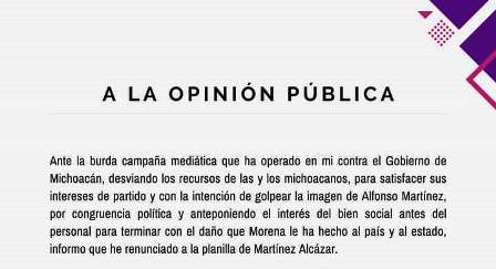 Se retira Juan Bernardo Corona de la planilla de Alfonso Martínez para la alcaldía de Morelia