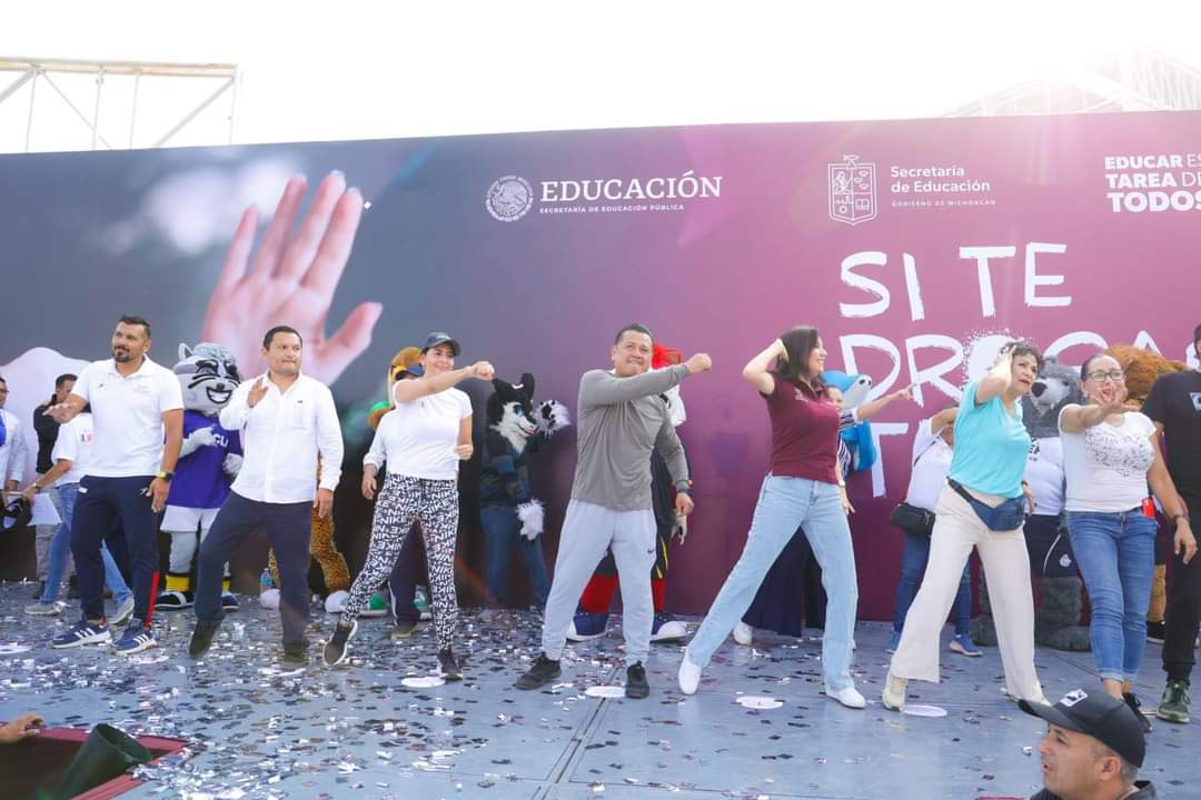 «Hagamos actividad física y no caigamos en la tentación de las drogas», insistió Torres Piña, acompañado de la secretaria de SEE, Gabriela Molina, y de Mariana Sosa, directora de Educación Media Superior y Superior.