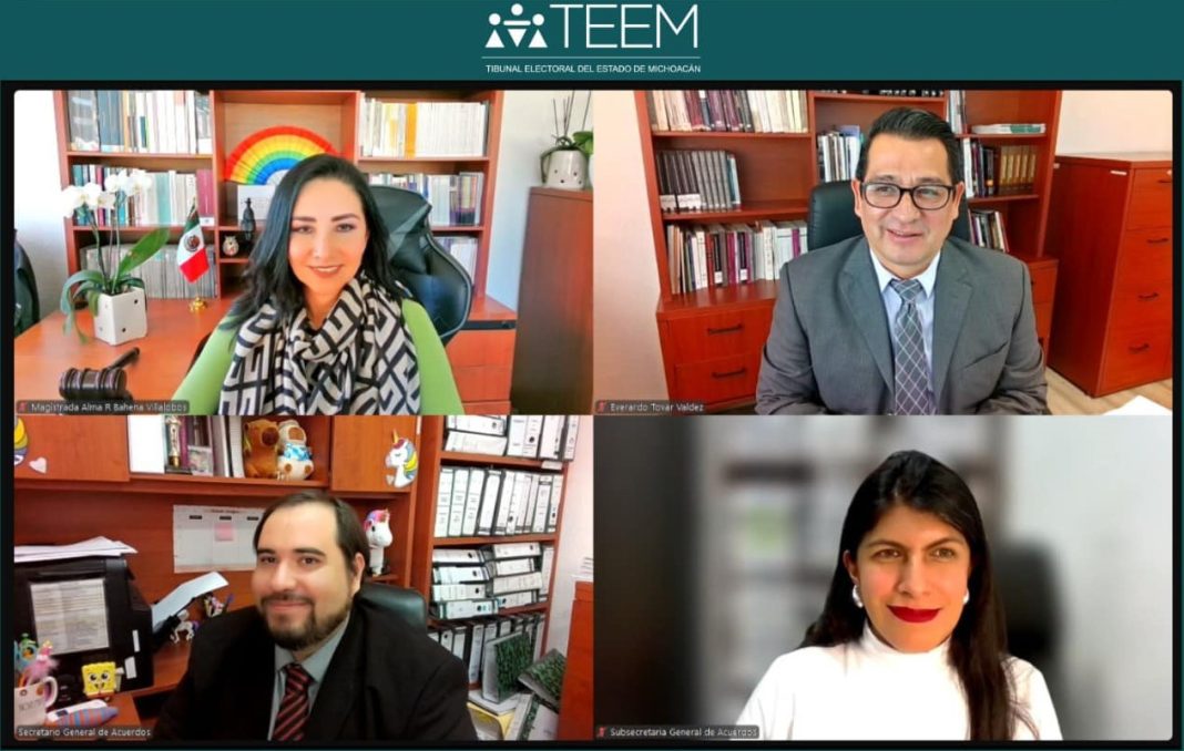 El Tribunal Electoral del Estado (TEEMICH) realizó dos sesiones públicas el día de hoy; en la primera la Magistrada Presidenta Alma Rosa Bahena Villalobos, la Magistrada Yurisha Andrade Morales y el Magistrado Everardo Tovar Valdez analizaron un juicio ciudadano y tres procedimientos especiales sancionadores por presuntos actos de violencia política contra las mujeres en razón de género (VPMG).