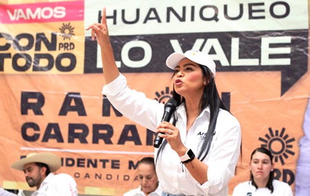 La candidata reconoció trayectoria y compromiso de candidata a diputada local por Puruándiro del PRD, PRI y PAN, con quien estuvo en Huaniqueo