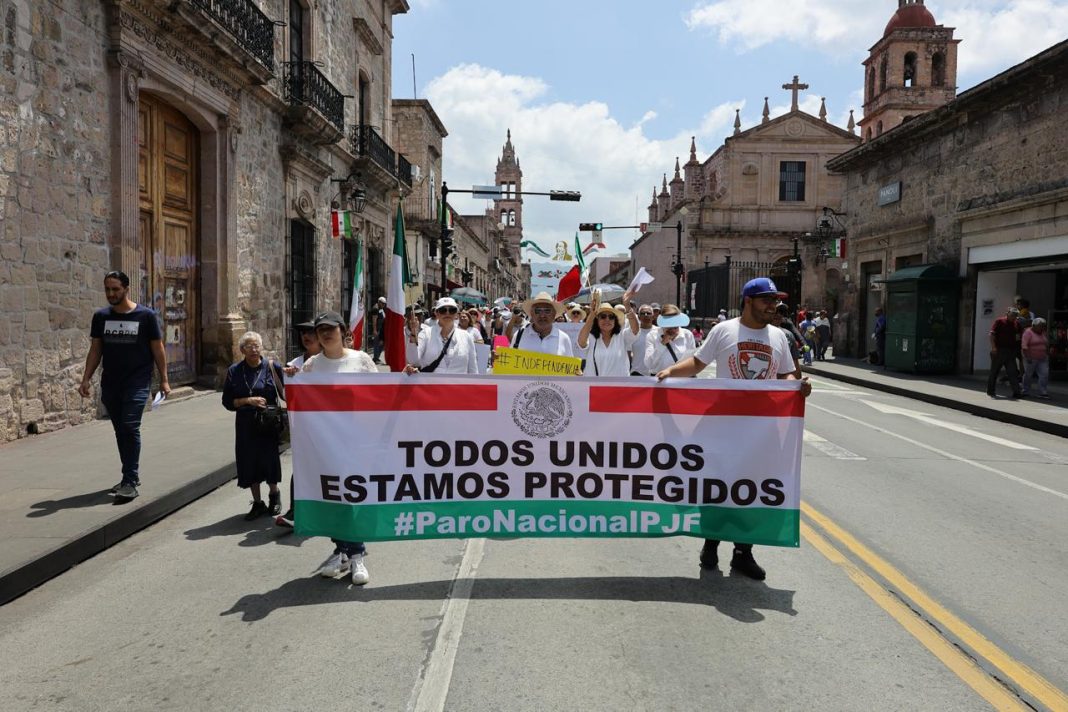 A partir de las 11:00 horas de esta mañana, decenas de trabajadores del Poder Judicial de la Federación (PJF), iniciaron una marcha desde la Fuente de las Tarascas con dirección a la Plaza Benito Juárez en el primer cuadro de la ciudad.