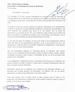 La renuncia fue recibida y firmada por el gobernador Alfredo Ramírez Bedolla a sólo poco más de dos horas previas a la designación