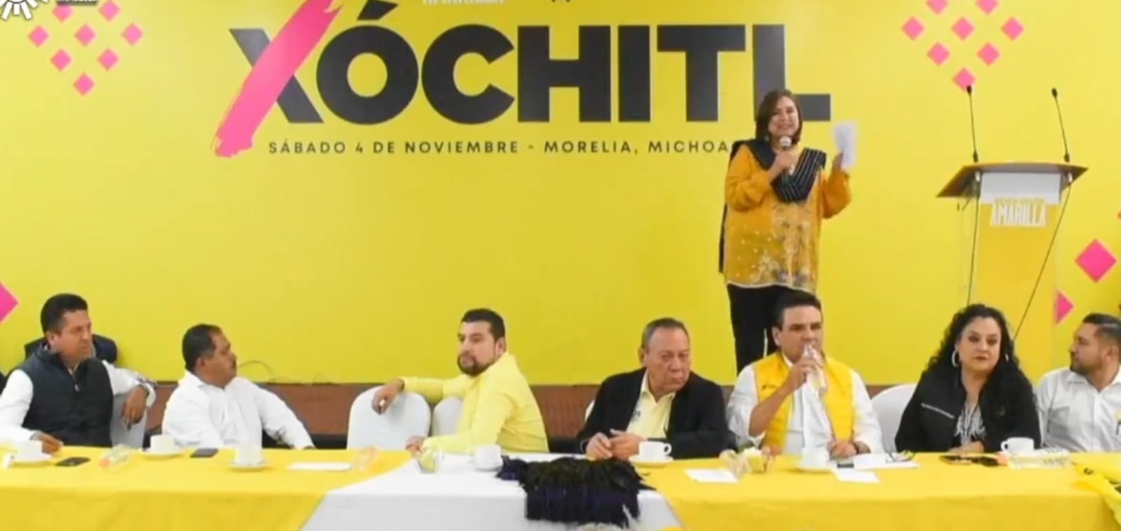 A su vez, Silvano Aureoles Conejo, ahí presente, dijo que «otra cosa sería en Michoacán si no hubieran llegado esos cabrones» y rateros de Morena, y tras dar un repaso de la importancia de Michoacán en la Historia de México por sus hechos ocurridos y personajes aquí surgidos en que se desde aquí la primera transformación en el país, le dijo a Gálvez Ruiz: «tú vas a hacer la primera presidenta de México, a huevo!», pues no queremos más tragedia ni un México ensangrentado «venido de un gobierno en contubernio con el crimen organizado», pues basta ver el desastre, las muertes y asesinatos que ocurren en los estados donde gobierna Morena», para enseguida decirle: «México te necesita, ponte chingona», tras ponderar que el líder nacional del PRD, Jesús Zambrano, «es el cemento del Frente».