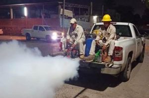 Personal del departamento de Vectores fumigó en Aquila y Coahuayana mil 123 hectáreas en zonas habitacionales, plazas públicas, escuelas y mercados. Además, implementó jornadas comunitarias de descacharrización de lotes baldíos, en las que se recolectaron 30 toneladas de basura.