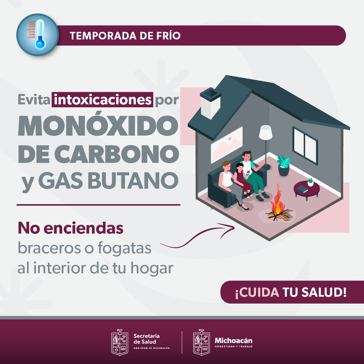 Morelia, Michoacán.- Ante las bajas temperaturas que se presentan en la entidad, la Secretaría de Salud de Michoacán (SSM) recomienda a la población evitar el uso de braceros y calentadores al interior del hogar.