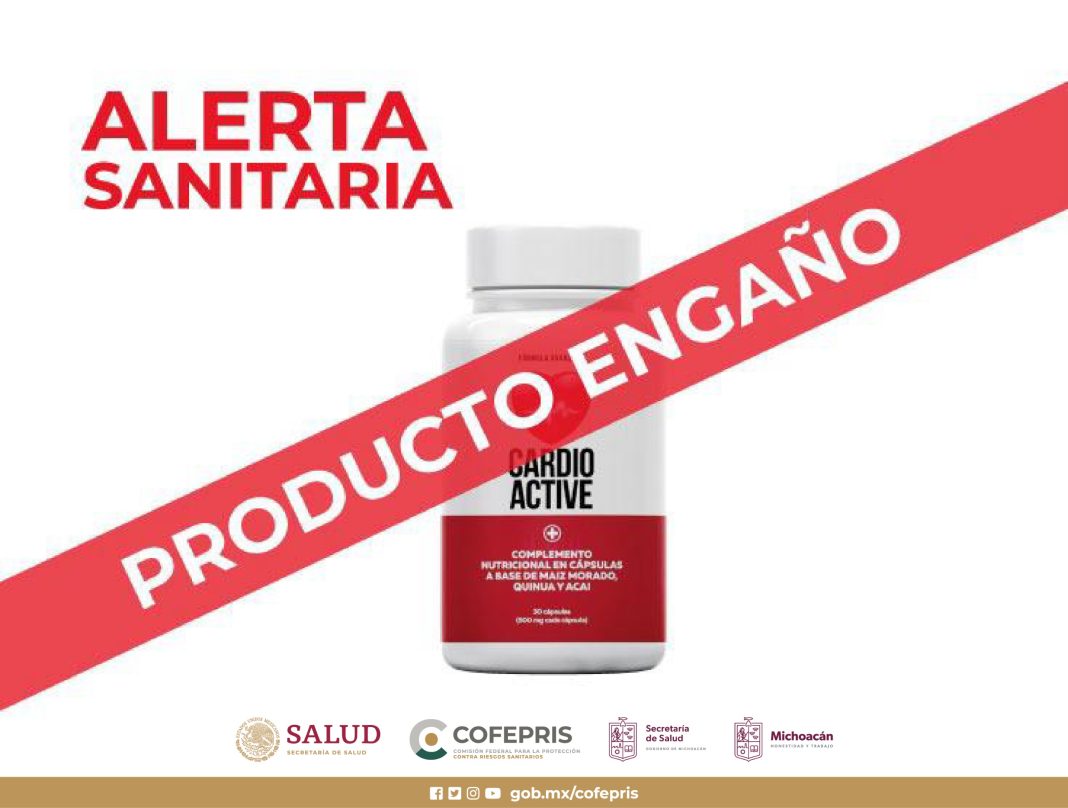 La Secretaría de Salud de Michoacán (SSM) alerta a la población para no consumir Cardio Active, producto riesgoso para la salud, cuya fórmula contiene hierba de San Juan, tóxica y no autorizada en el país por la Comisión Federal contra Riesgos Sanitarios (Cofepris).