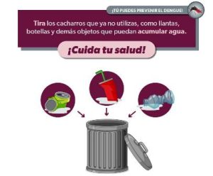 Para prevenir el dengue en el hogar, la Secretaría de Salud de Michoacán (SSM) explica cómo implementar la estrategia lava, tapa, voltea y tira recipientes que puedan servir de criaderos de mosquitos.