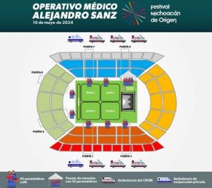 La Secretaría de Salud de Michoacán (SSM) mantendrá garantizada la atención médica en el concierto de Alejandro Sanz, con el despliegue de 45 paramédicos y ocho ambulancias, en el interior y exterior del Estadio Morelos.