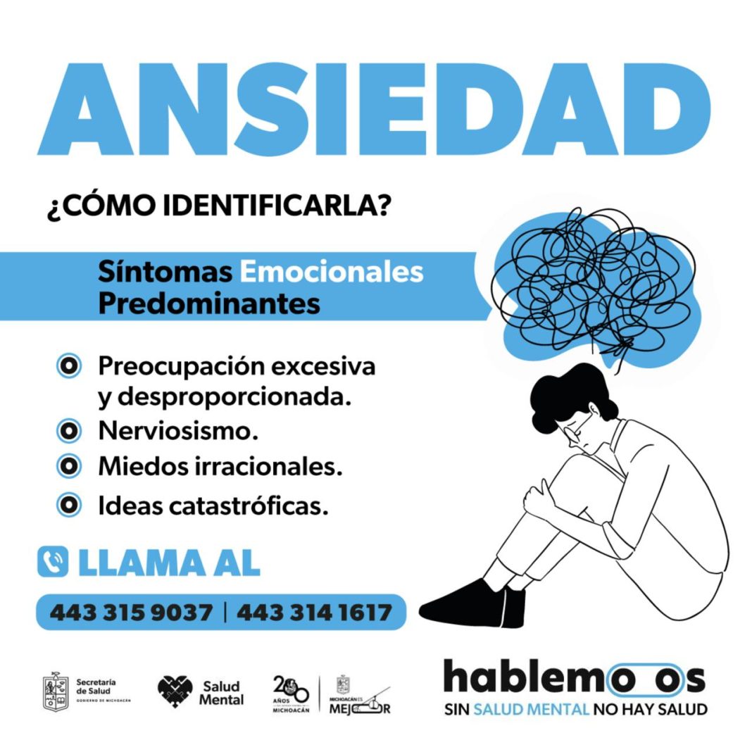Morelia, Michoacán.- La Secretaría de Salud de Michoacán (SSM) te invita a atender a tiempo los problemas de ansiedad, llamando a la línea telefónica Hablemoos, antes de que el problema se convierta en un trastorno de salud mental.