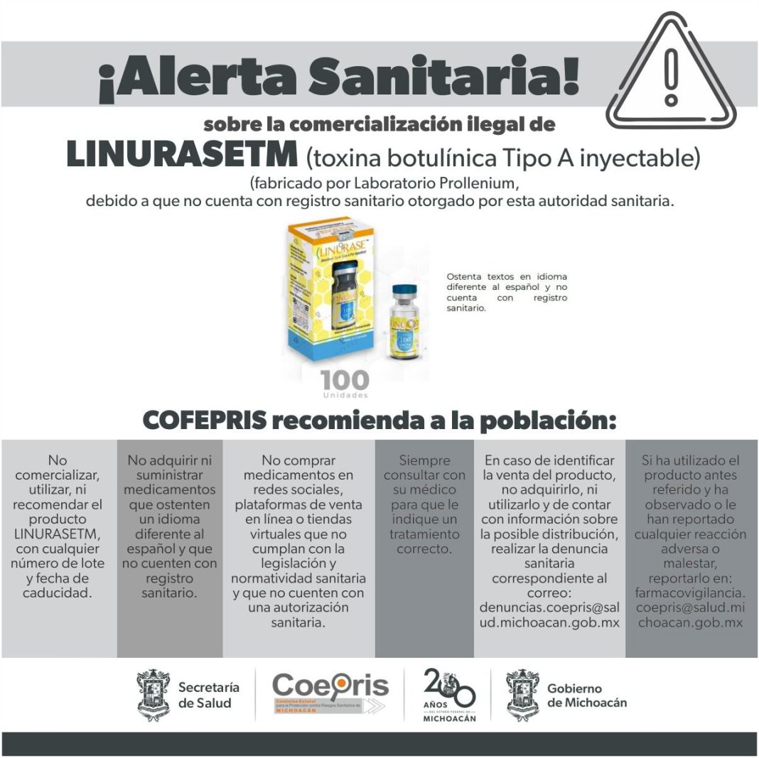Para evitar que continúe la comercialización de los productos antes mencionados, se exhorta a la población a consultar las alertas en la página coepris.michaocan.gob.mx y presentar su denuncia sanitaria al correo electrónico denuncias.coepris@salud.michoacan.gob.mx.