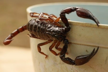 Los alacranes pueden encontrarse tanto dentro de la casa como en patios, generalmente intenta escaparse, y pican si es molestado. Camina por el piso y puede escalar fácilmente telas o paredes.