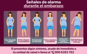 Las señales de alarma para acudir de inmediato al médico o a la unidad de salud más cercana son el sangrado vaginal abundante, hinchazón de cara, pies y piernas, ver lucecitas o escuchar zumbidos y malestar general.