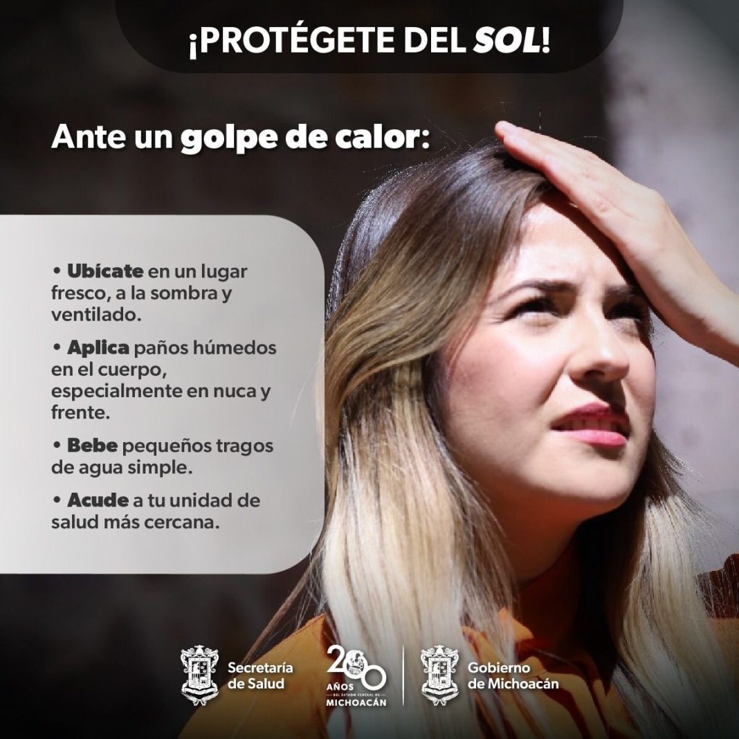 Ante un golpe de calor, es necesario actuar inmediatamente y aplicar medidas para evitar problemas mayores, explicó la Secretaría de Salud de Michoacán (SSM).