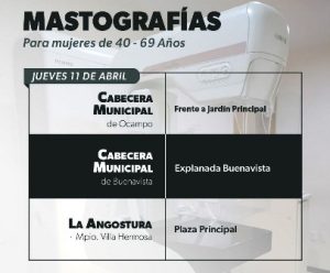La Secretaría de Salud de Michoacán (SSM) ofrecerá mastografías gratuitas a mujeres de 40 a 69 años de edad en el municipio de Buenavista, para detectar de manera oportuna nuevos casos de cáncer de mama, aun cuando la esperanza de vida es mayor.