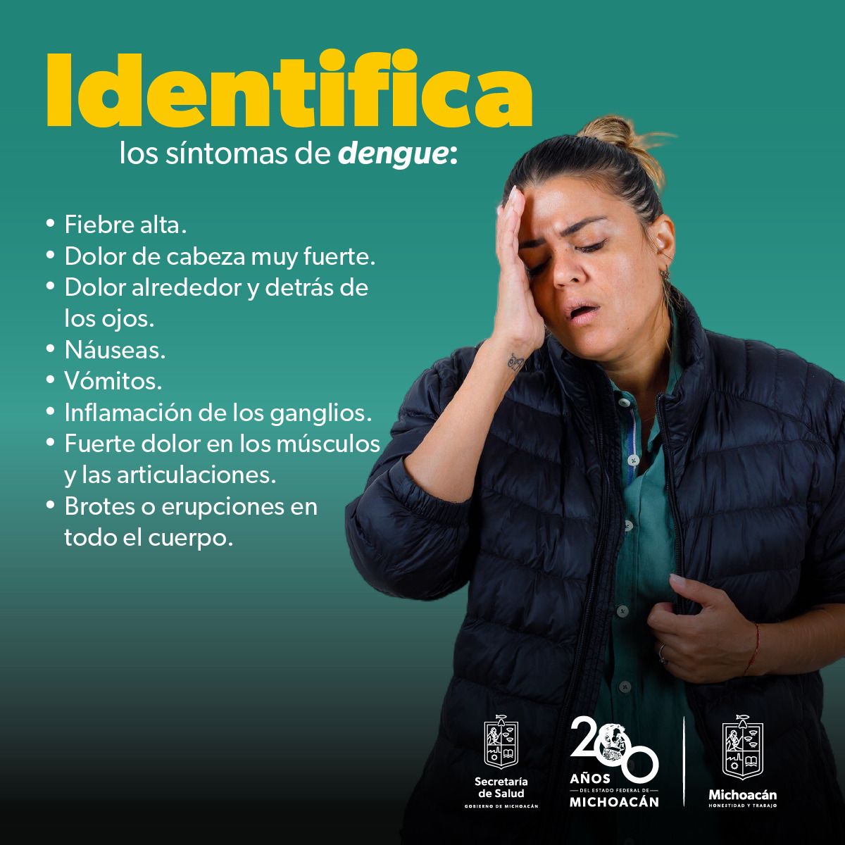 Debido a la constante presencia de picaduras del mosquito transmisor, Aedes aegypti, la dependencia comparte algunos de los síntomas que puede presentar una persona con esta enfermedad.